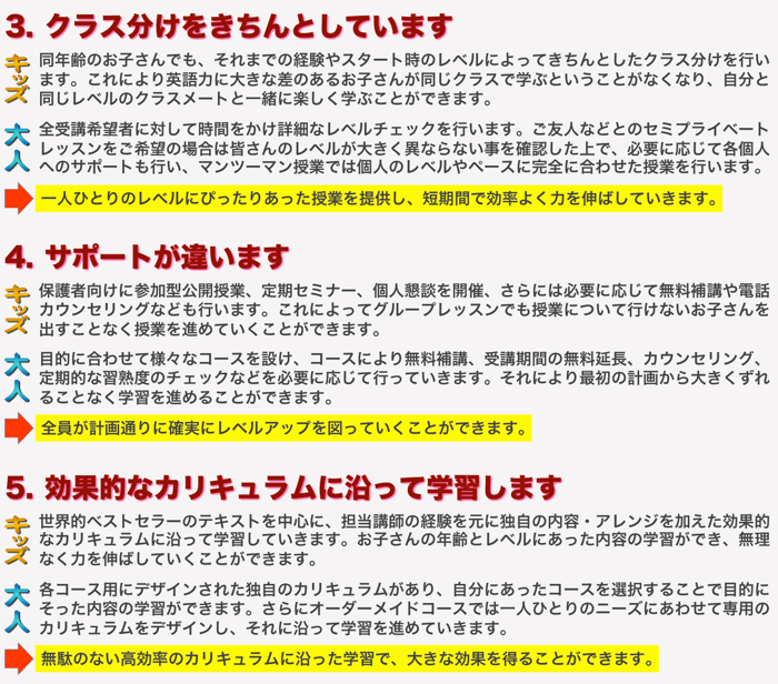 (日常会話完成レベルの上級者向けコースに限り、英日以外のバイリンガルに担当させる場合もあります)